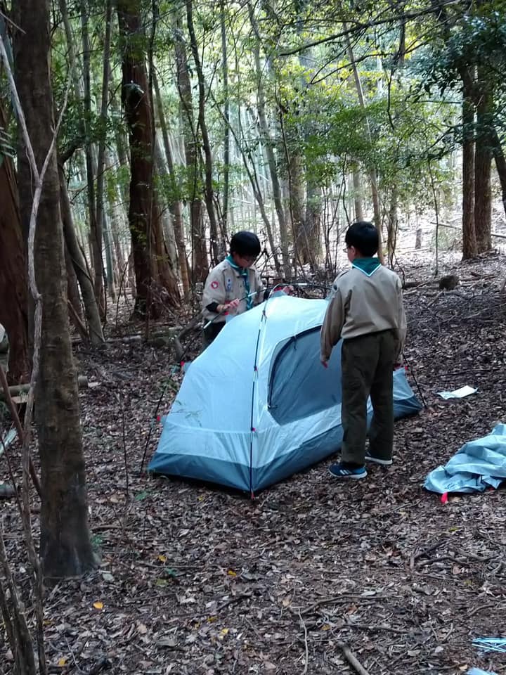 2021年10月31日(日)ボーイ隊隊集会。新入隊歓迎デイキャンプ。今月から新年度を迎え、ボーイ隊は5名のスカウト登録でスタートしましたが、うち2名が家庭の事情で休隊中の為、3名のスカウト活動。新たな上進スカウトを迎えて、長岡第2団キャンプ場で、歓迎デイキャンプ実施。歓迎と言っても、そこはボーイスカウトの歓迎なので、国旗儀礼から始まり、ロープワーク、昼食はダンパー、ソロテントの設営訓練と、みっちり先輩スカウトから、スカウト技能を伝授してもらえる歓迎デイキャンプです。最後は、上進したスカウトの「誓いの式」。これで無事に君もボーイスカウトです。ここには、人生を生きていく上で本当に大切な事がいっぱい存在します。学校でも、家庭でもない、この場所でたくさんのものを得てください。さあ、今年度もめいいっぱい楽しもう!